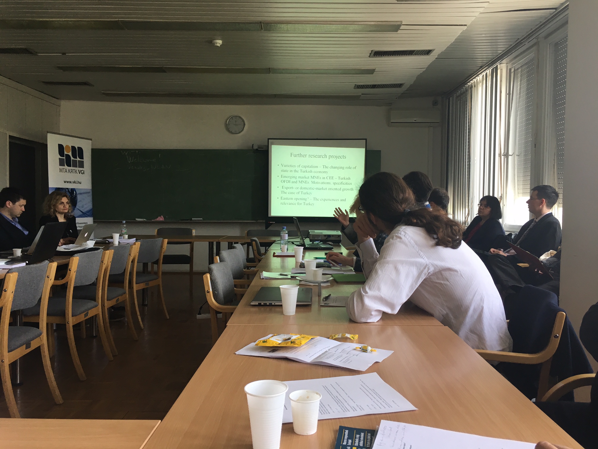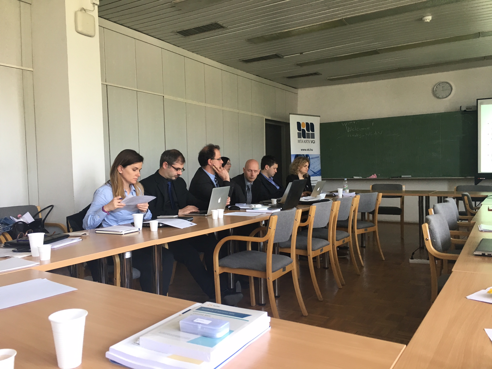 Május 11. és 12. között került sor a meglévő tudományos eredmények kölcsönös megismertetését és a jövőbeni kutatási együttműködéseket célzó nemzetközi műhelyre, melyen kutatóink mellett részt vettek a szerb Institute of Economic Sciences, Belgrade, a horvát Institute of Economics, Zagreb és az osztrák Vienna Institute for International Economic Studies munkatársai is. A három delegáció mindegyike négy-öt kutatóval, köztük intézetvezetőkkel, képviseltette magát a rendezvényen.