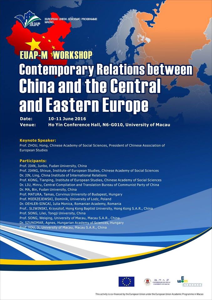 A Makaói Egyetem június 10. és 11. között workshopot szervez Kína és a közép-kelet-európai országok kapcsolatáról. Intézetünket Szunomár Ágnes képviseli a rendezvényen.